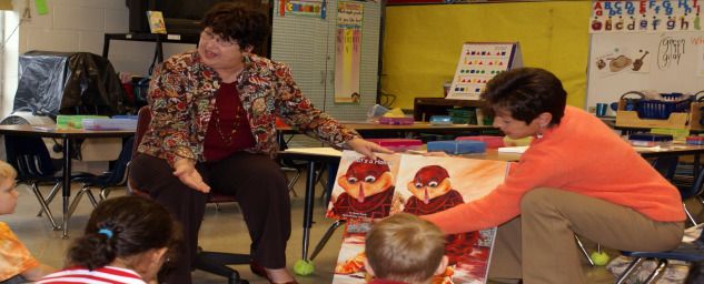 Candy and Jane read "What's a Hokie?" to students at Galax Elementary School. |